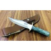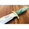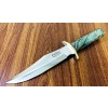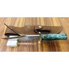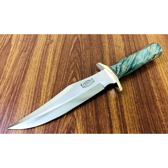 The top cutting edge is sharpened approximately 5 ¼”. Brass double forward curved hilt. Approximately 5″ Stabilized Spalted Maple Wood Handle.